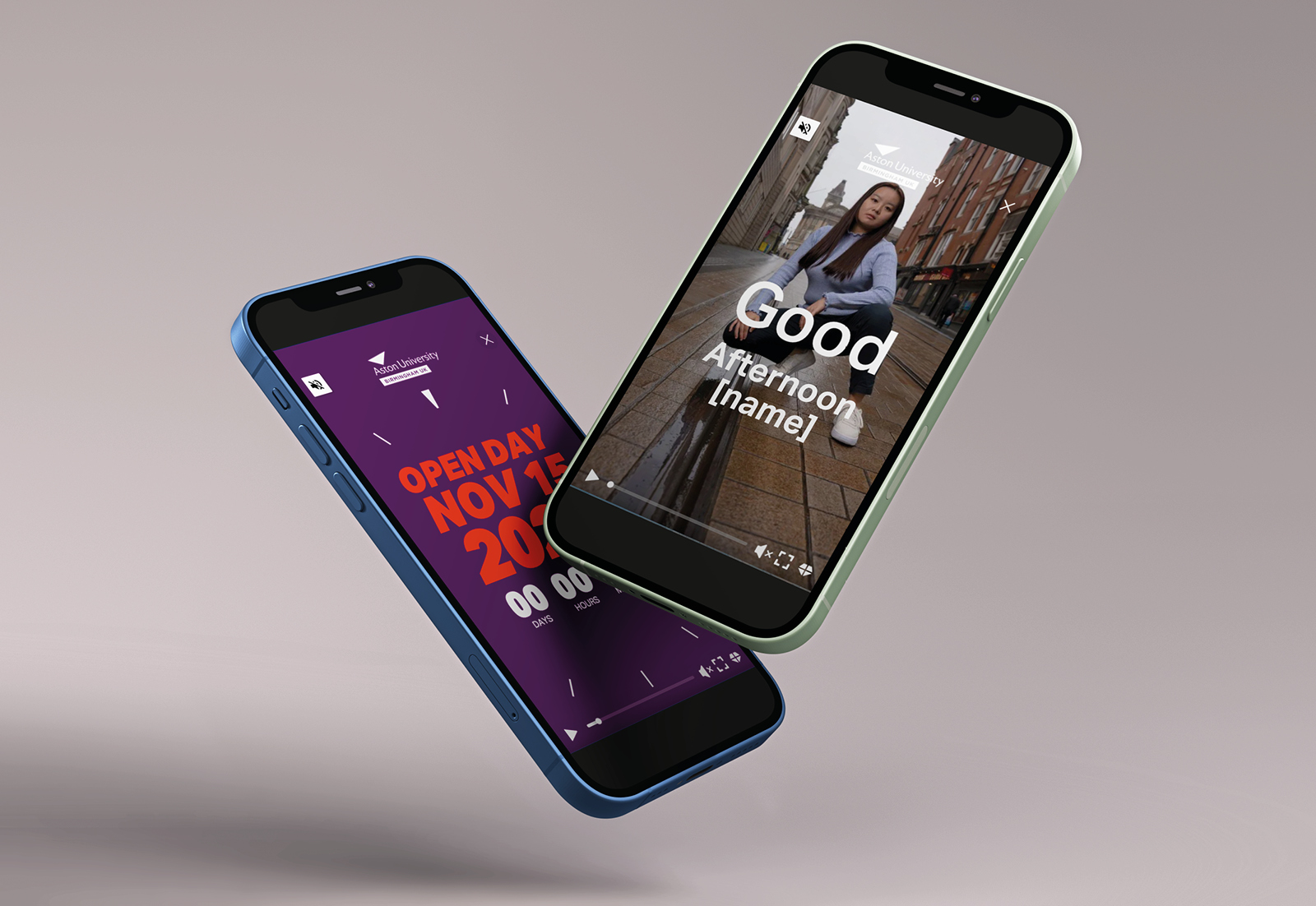 Improve the impact and conversion rates of your email campaigns with our creativity and this unique MP5 technology. It produces interactive videos and uses your CRM data to personalise the experience to each student with their name, location and more.